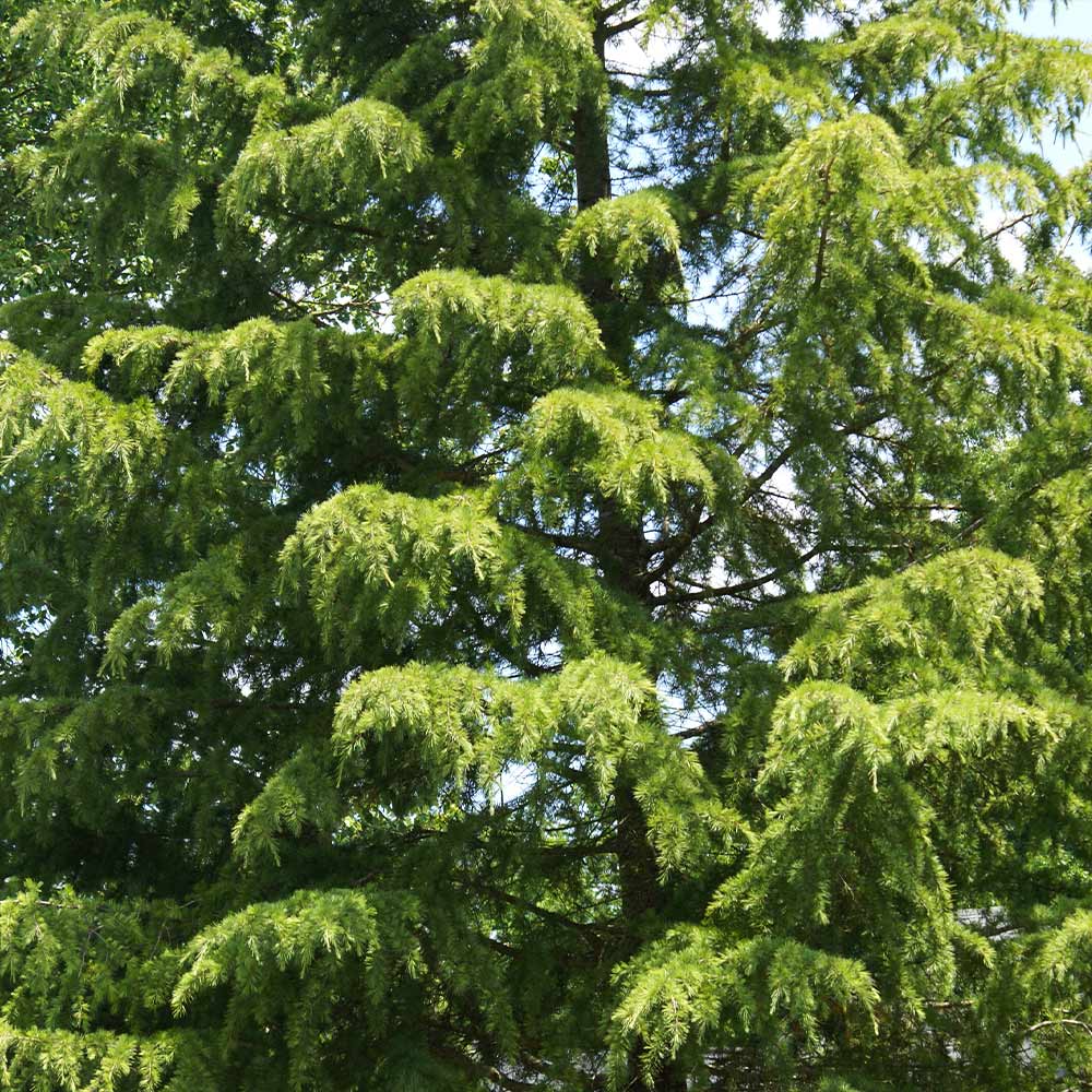 The Deodar Cedar (Cedrus deodara) is a drought-tolerant evergreen producing 1-2 inch long needles described as blue-green or even a green-silver color. There are typically about 20-30 needles in whorls on their branches as well as reddish-brown cones that are 3-4 inches long at maturity. These cones will eventually break off which allow seeds to disperse. Adored for its weeping habit, the branches extend out, angling down slightly while the tips rise upward. Reaching mature heights of up to 70 feet and widths of 20-40 feet, they make a great windscreens for large yards and also bring an ornamental element often seen in parks or other larger gardens. Recommended for USDA growing zones 7-9, they grow best in warmer climates and can withstand temperatures down to 10 degrees.