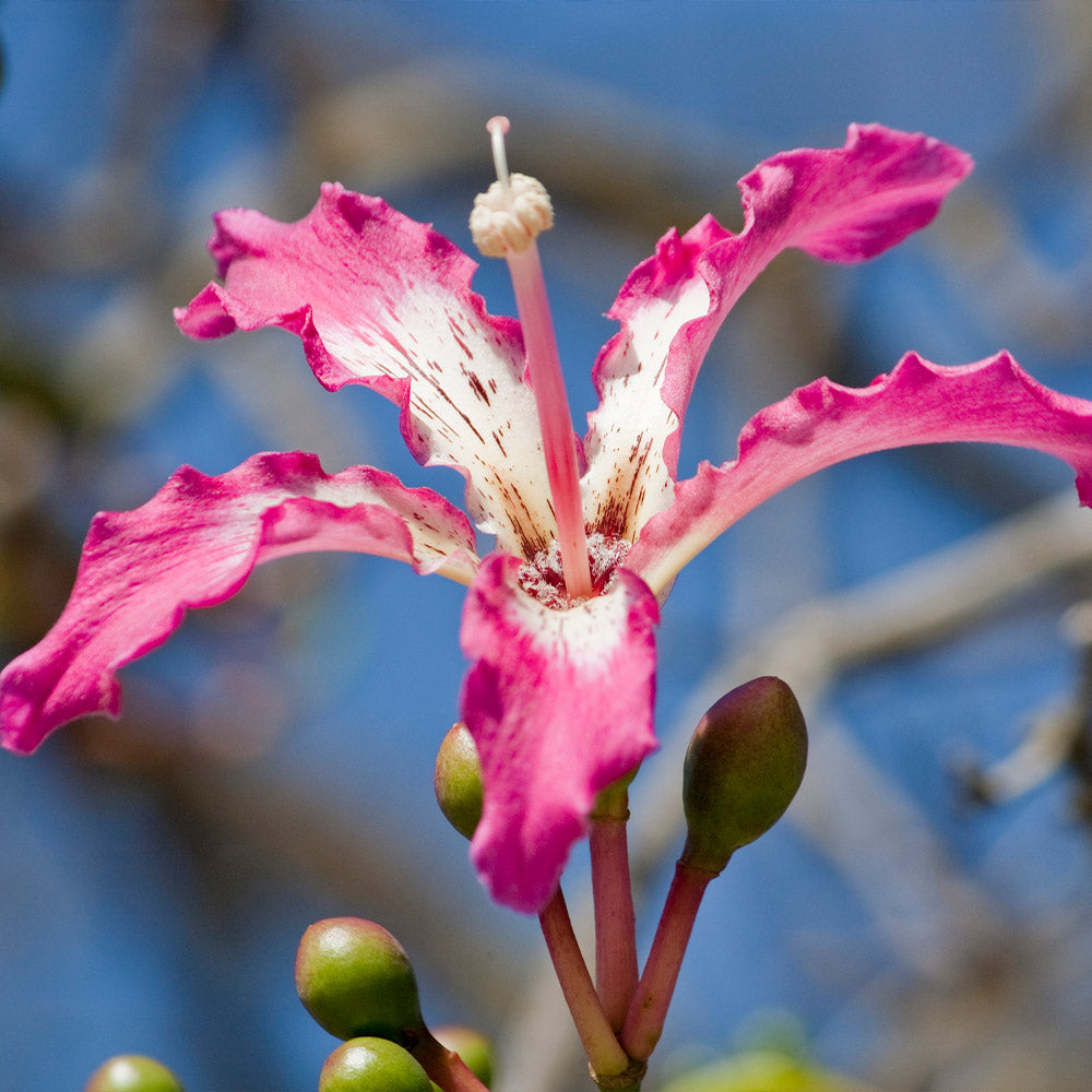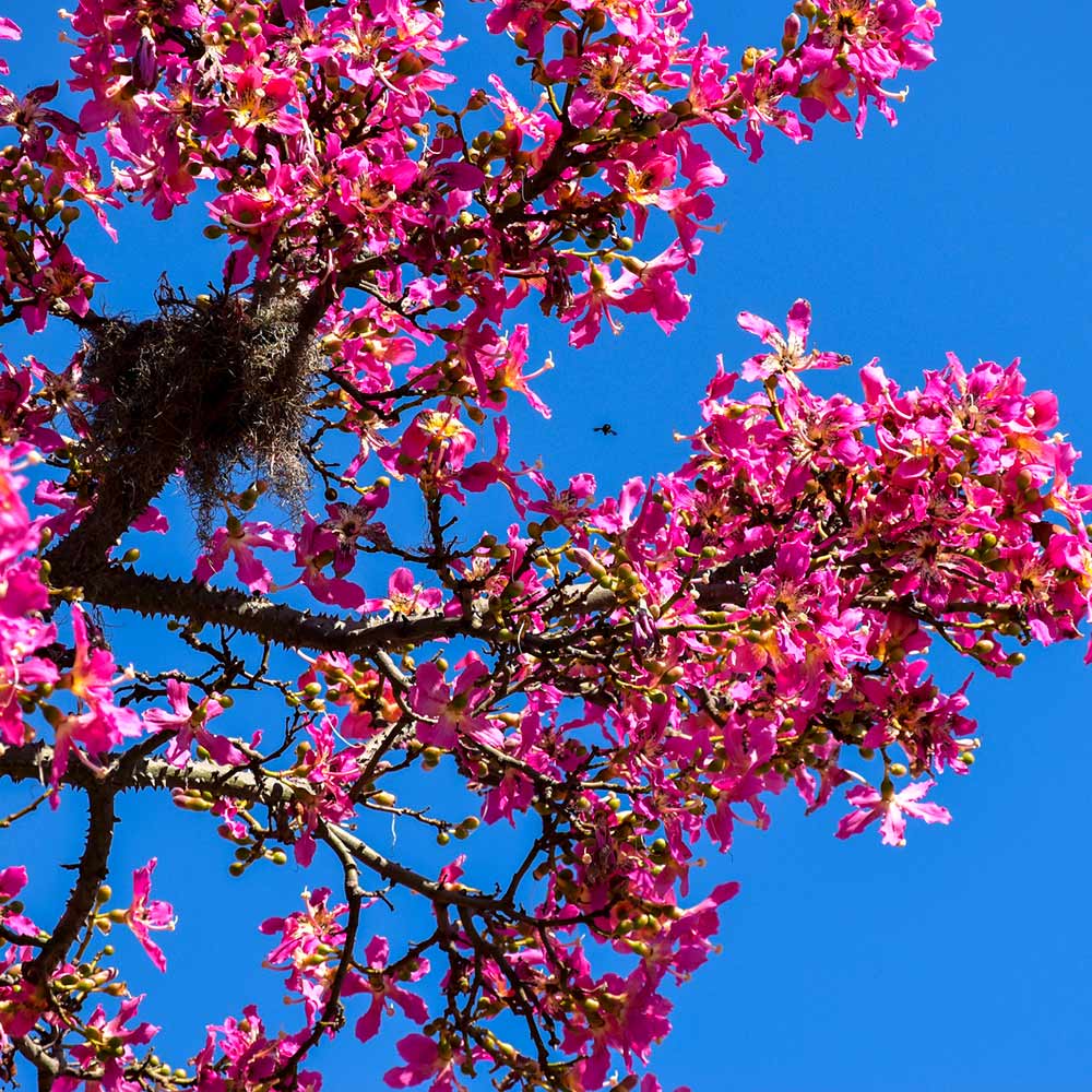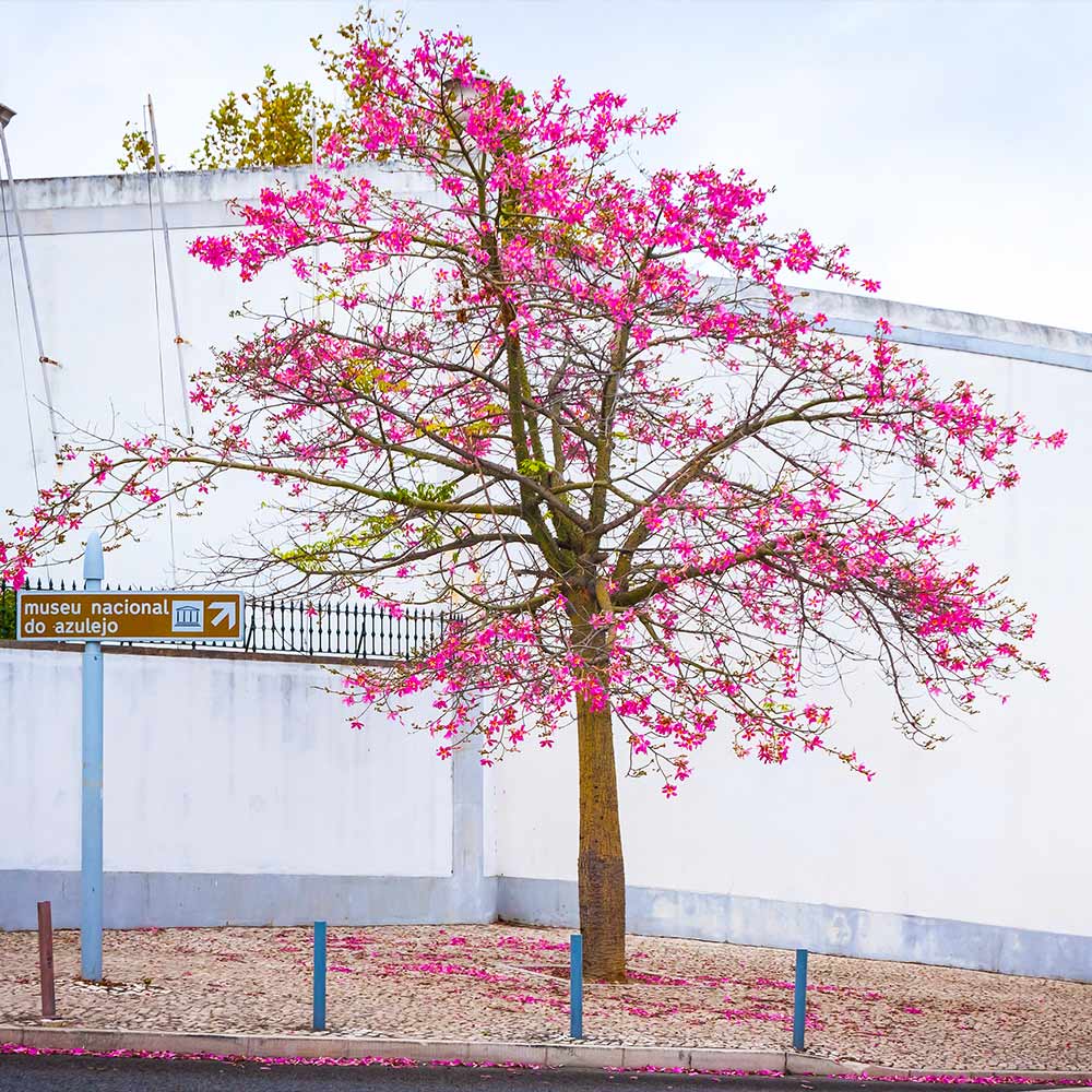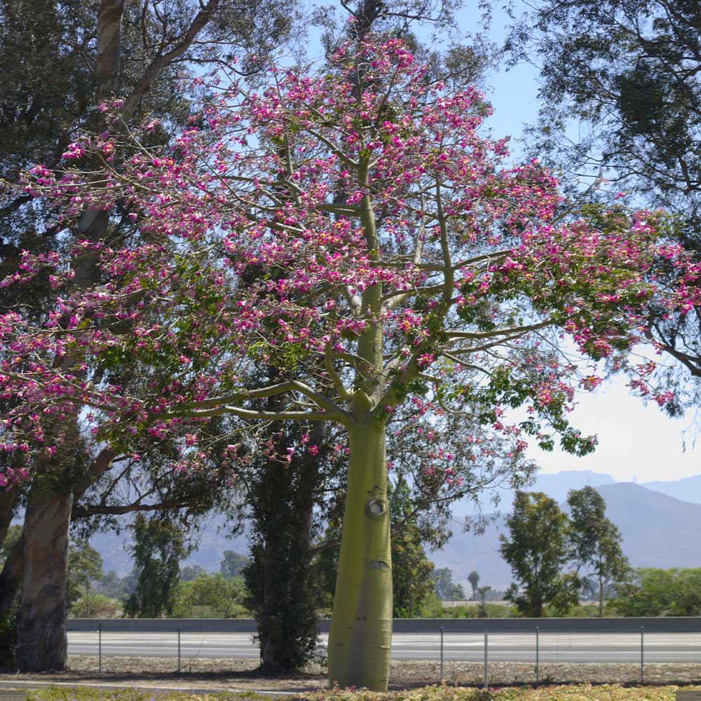 A uniform silhouette sprouts green limbs for a tropical-inspired, ultra-healthy look, making the Pink Silk Floss Tree second to none. But it truly wows with gorgeous, funnel-shaped and Hibiscus-like pink blooms that cover the canopy during the autumn months, from October to November.