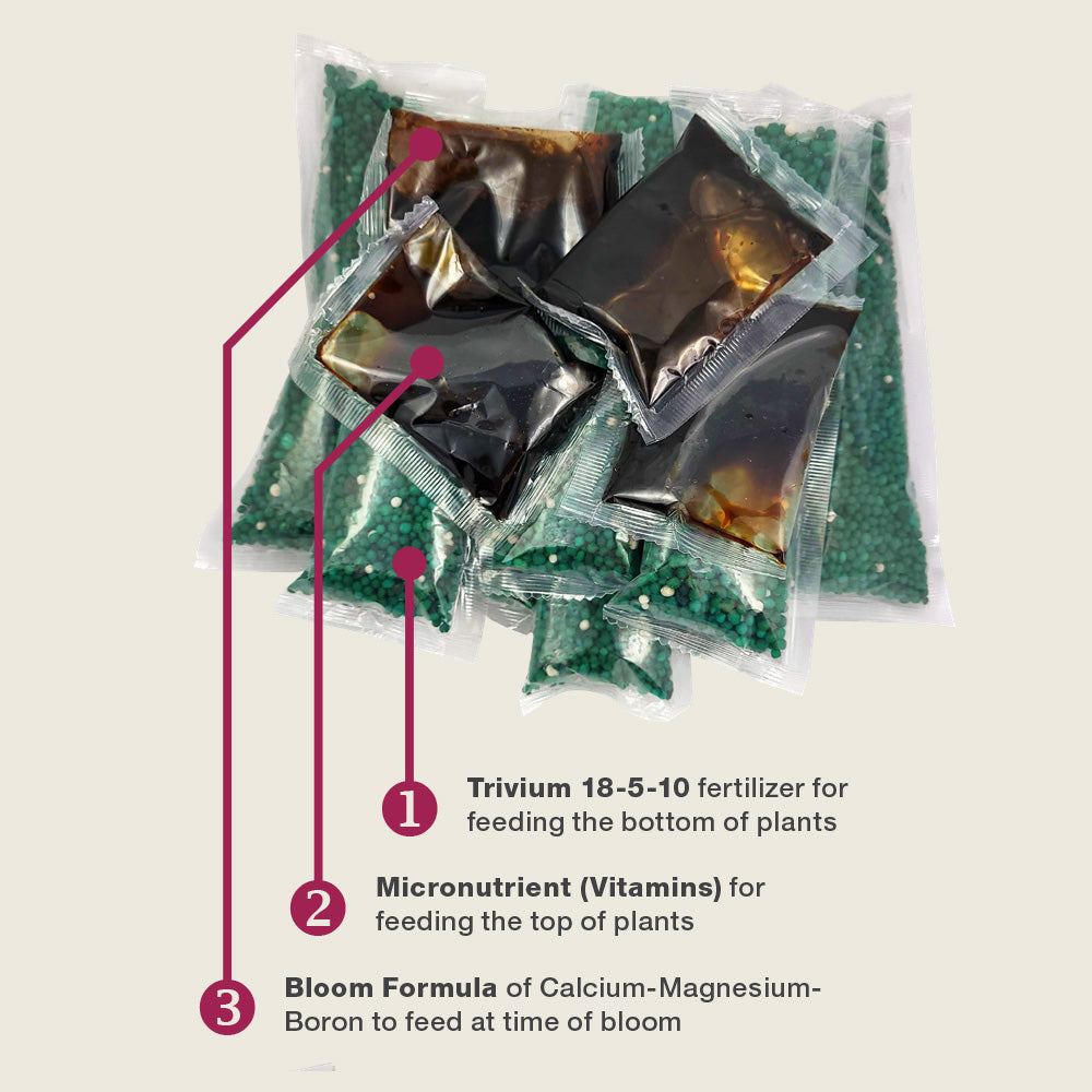 - Two doses of nutrient spray including Magnesium, Calcium and Boron, for stronger stems to support fruit