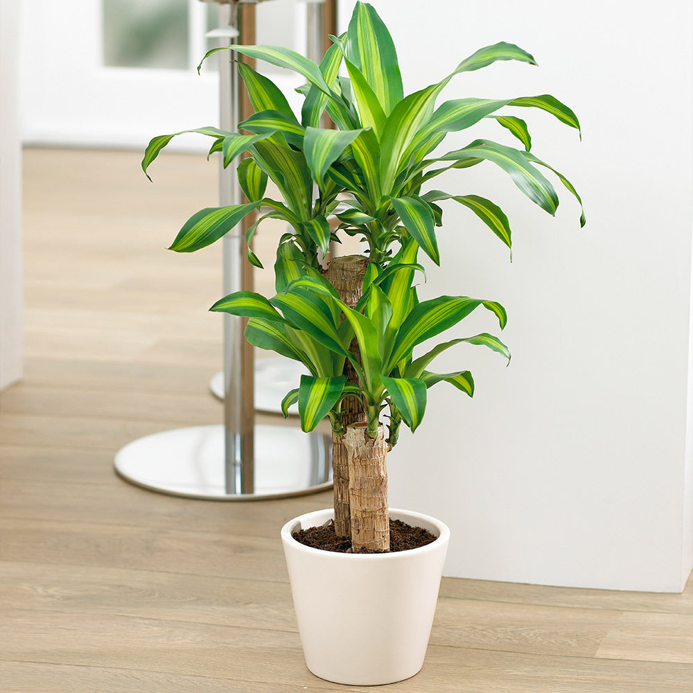 Adaptable and totally lush, the Dracaena Massangeana Cane, also known as the Corn Plant, is known for its versatility, compact size and slow yet steady growth. It’s perfect for first-time plant owners as well as those who are away from home often. Why? Well, because it's low-maintenance and luxuriant.